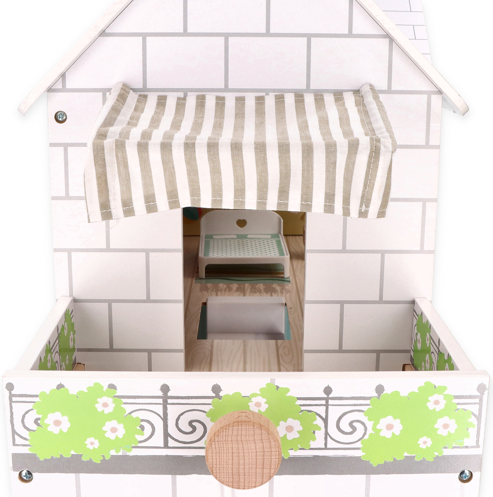 Drewniany domek będzie idealnym prezentem na wiele lat! Wykonany z dbałością o szczegóły w przyjemnej pastelowej kolorystyce, zachwyca ponadczasowością.
