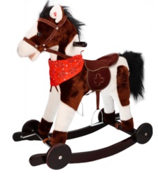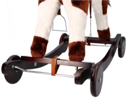 Drewniane bieguny i kółeczka sprawiają, że w zależności od ich ułożenia konik może być bujaczkiem lub jeździkiem. Zmiana z jeździka na bujaczek odbywa się w bardzo łatwy sposób. Nie trzeba nic demontować wystarczy odpiąć paseczek i obrócić kółka na drugą stronę.